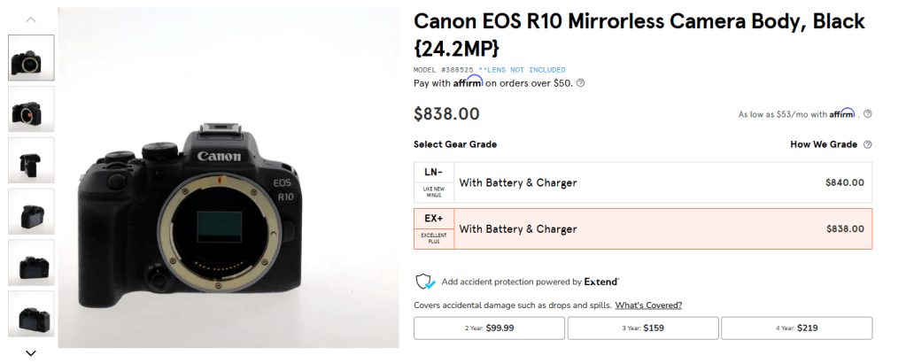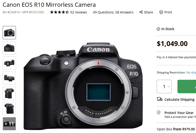 Let’s say I want to buy a Canon R10. Let’s go through the steps above.